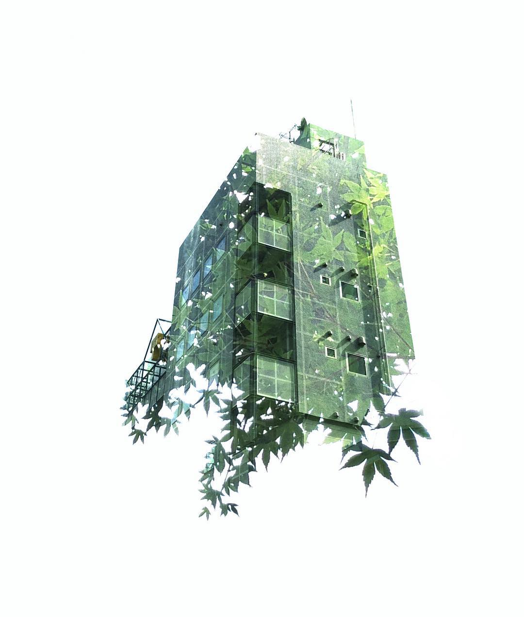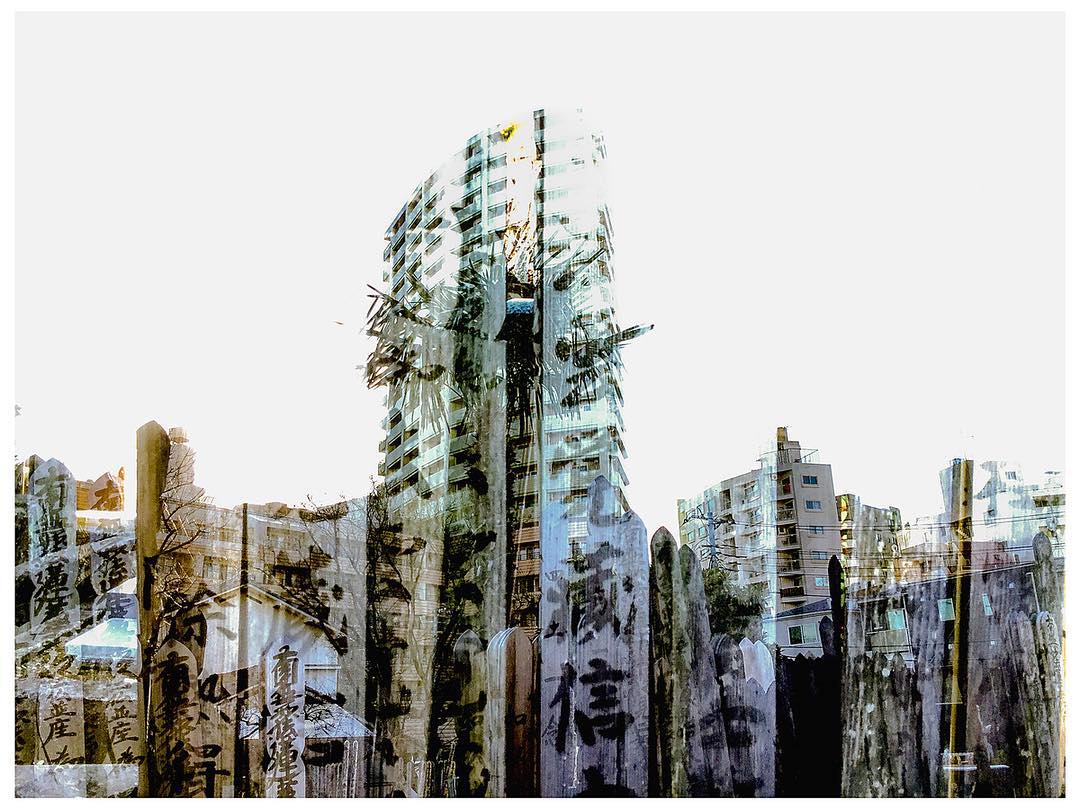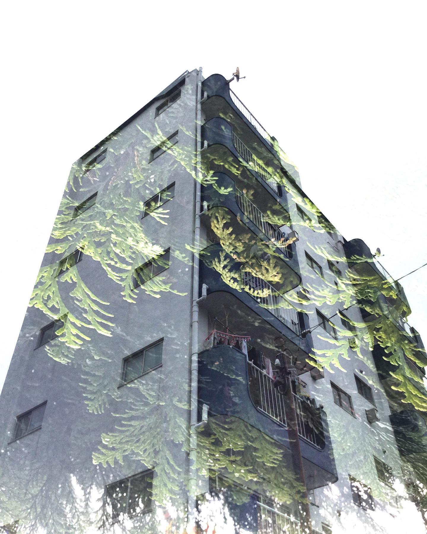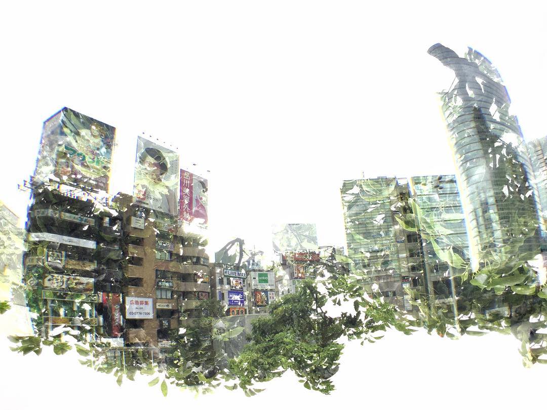 Ce travail est le résultat d'une tentative initialement baptisée "Tokyo Eukaryote" de double exposition directe sur capteur à Tokyo. Le but était de médiatiser l'émotion ressentie dans cette mégalopole plus verte, organique et humaine que bétonnée et prétendument technologique, sans vie. Bref, c'était un point de vue qui avait pour but d'aller à l'encontre d'un stéréotype personnel qui, je l'ai bien remarqué, était aussi très présent chez les visiteurs français au Japon. J'ai souvent entendu, après l'avoir dit moi-même, "Nous éviterons Tokyo, les grandes mégalopoles bétonnées et bourrées de technologie, ce n'est pas notre truc, on veut voir le Japon authentique".