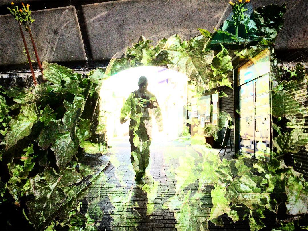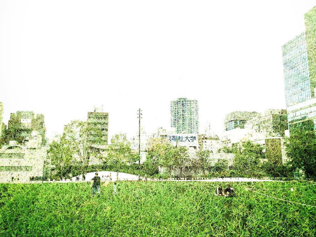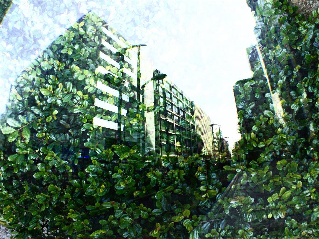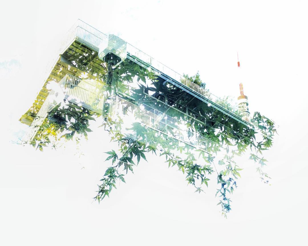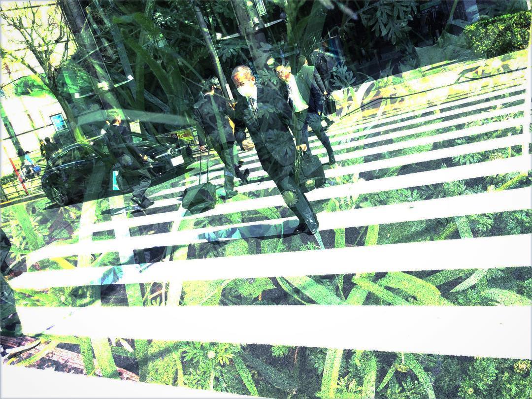 Ce travail est le résultat d'une tentative initialement baptisée "Tokyo Eukaryote" de double exposition directe sur capteur à Tokyo. Le but était de médiatiser l'émotion ressentie dans cette mégalopole plus verte, organique et humaine que bétonnée et prétendument technologique, sans vie. Bref, c'était un point de vue qui avait pour but d'aller à l'encontre d'un stéréotype personnel qui, je l'ai bien remarqué, était aussi très présent chez les visiteurs français au Japon. J'ai souvent entendu, après l'avoir dit moi-même, "Nous éviterons Tokyo, les grandes mégalopoles bétonnées et bourrées de technologie, ce n'est pas notre truc, on veut voir le Japon authentique".